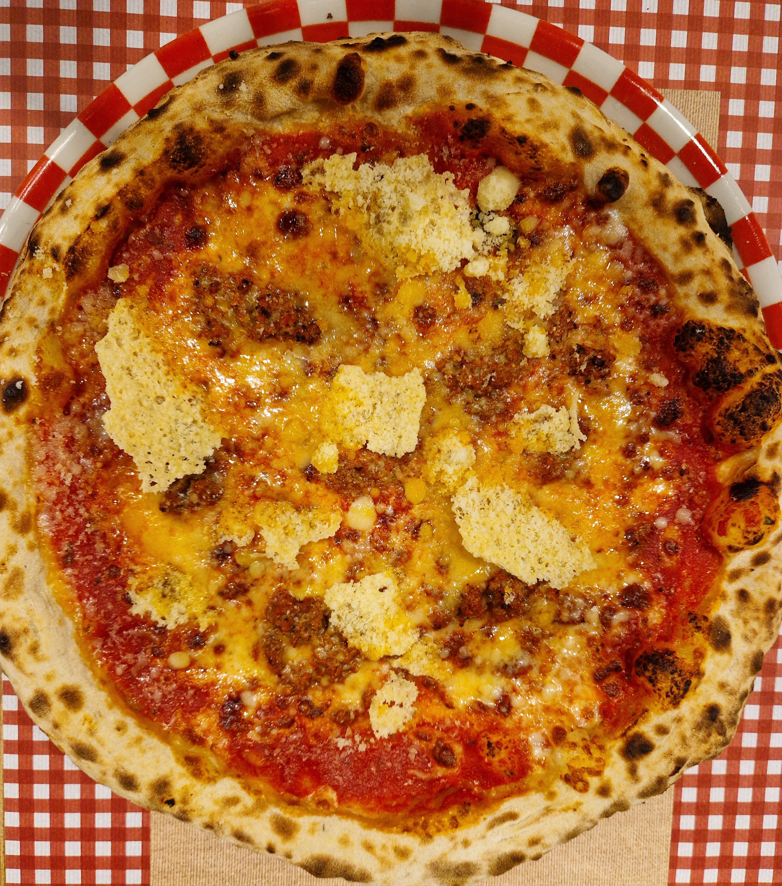 BolognesaMozzarella, ragù homemade, cialde di parmigiano.