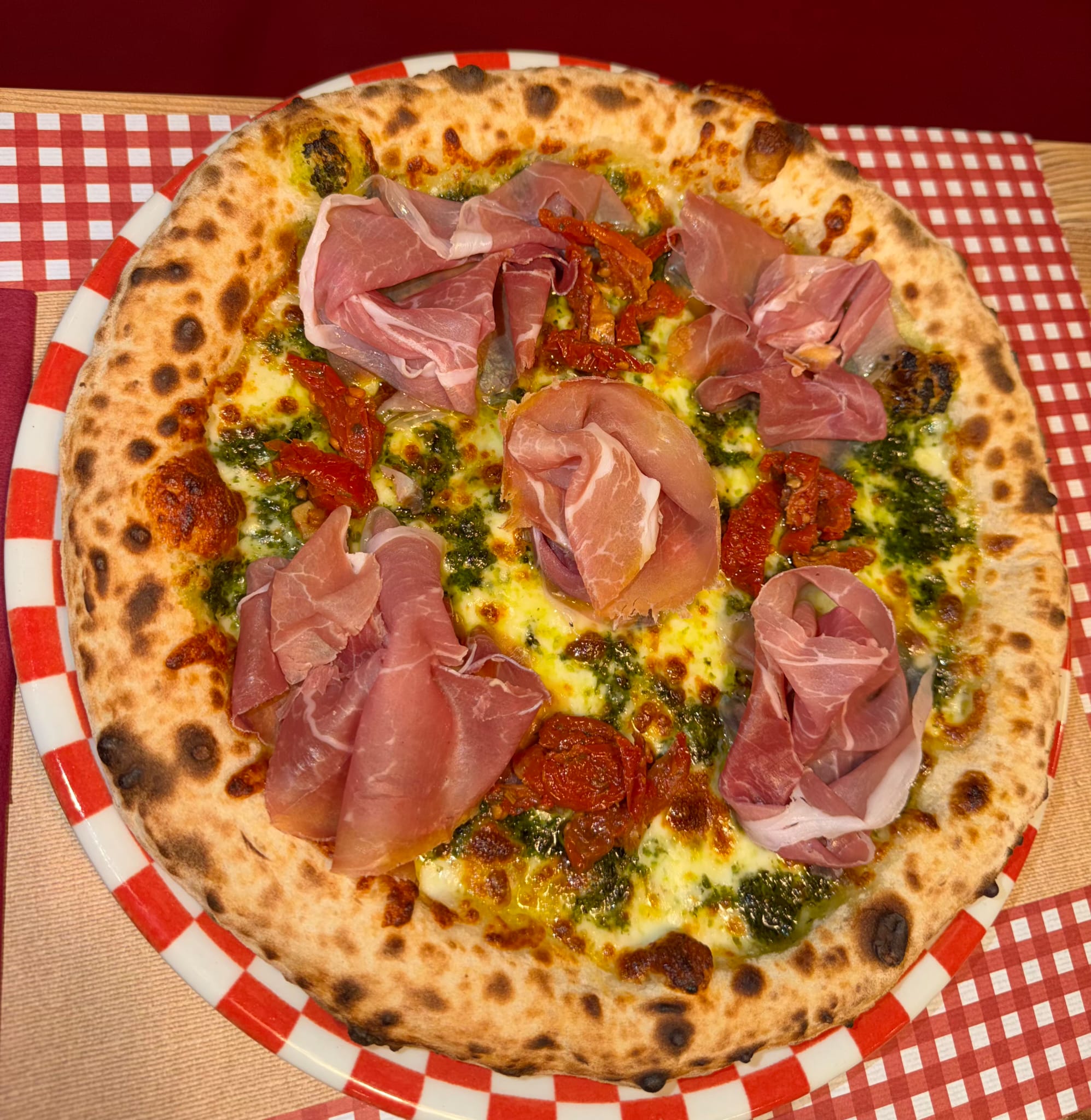 That's amorePesto, mozzarella, pomodorini secchi, crudo di parma.