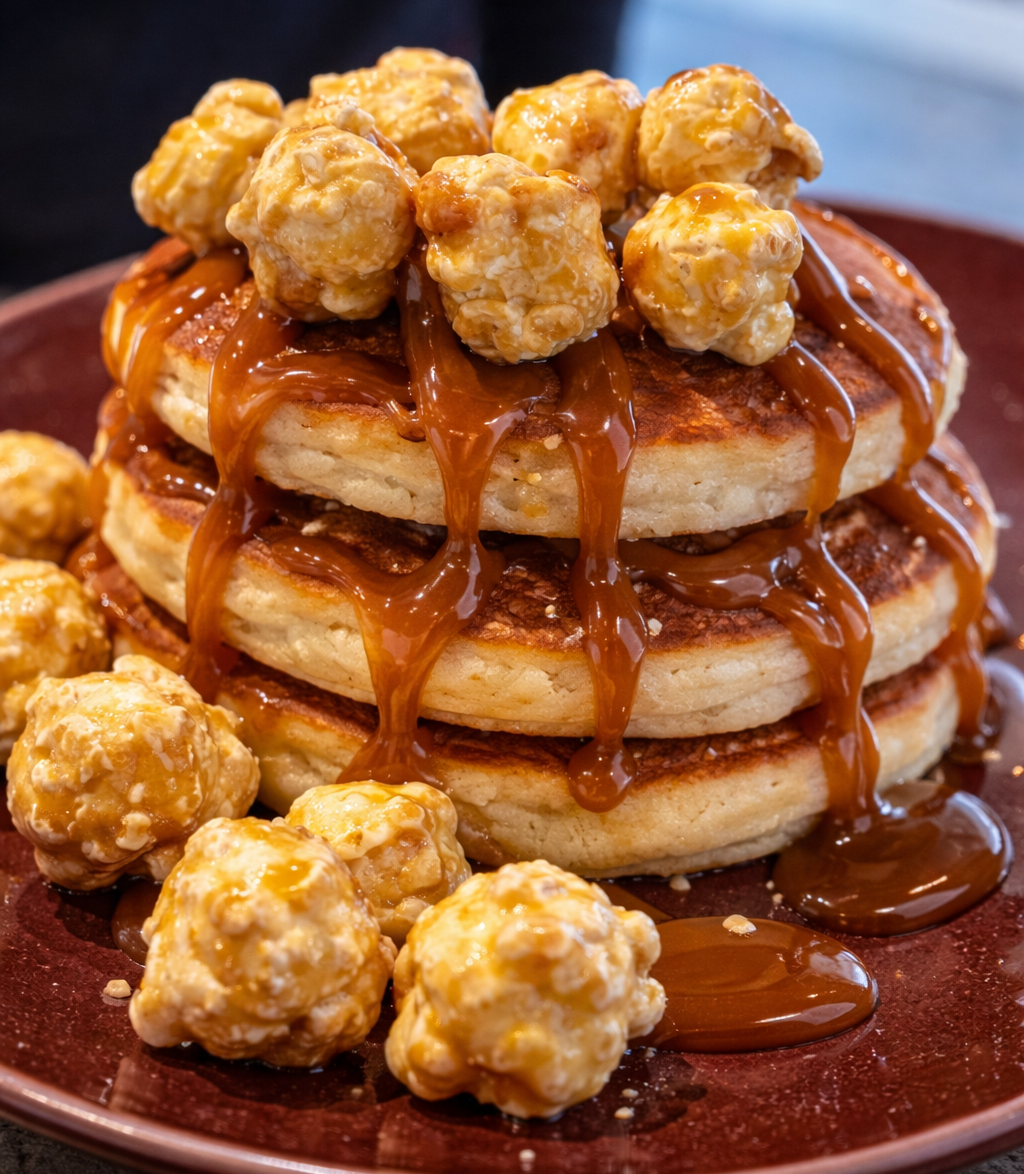 Pop corn pancake3 pancakes homemade con caramello salato e pop corn caramellati
