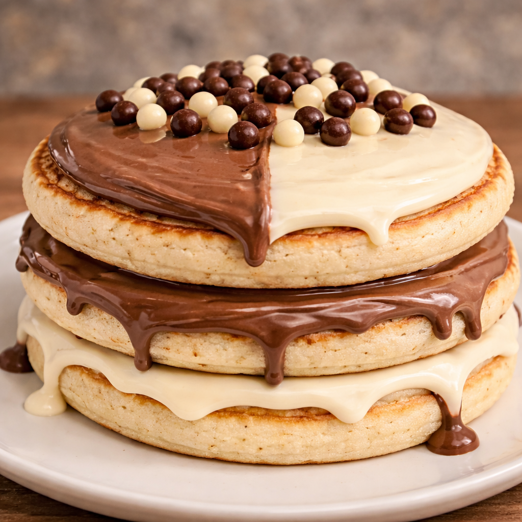 Double chocolate pancakes3 pancakes homemade, crema alla nocciola e cioccolato bianco. cioè, doppio crimine di gola. colpevoli e contenti.