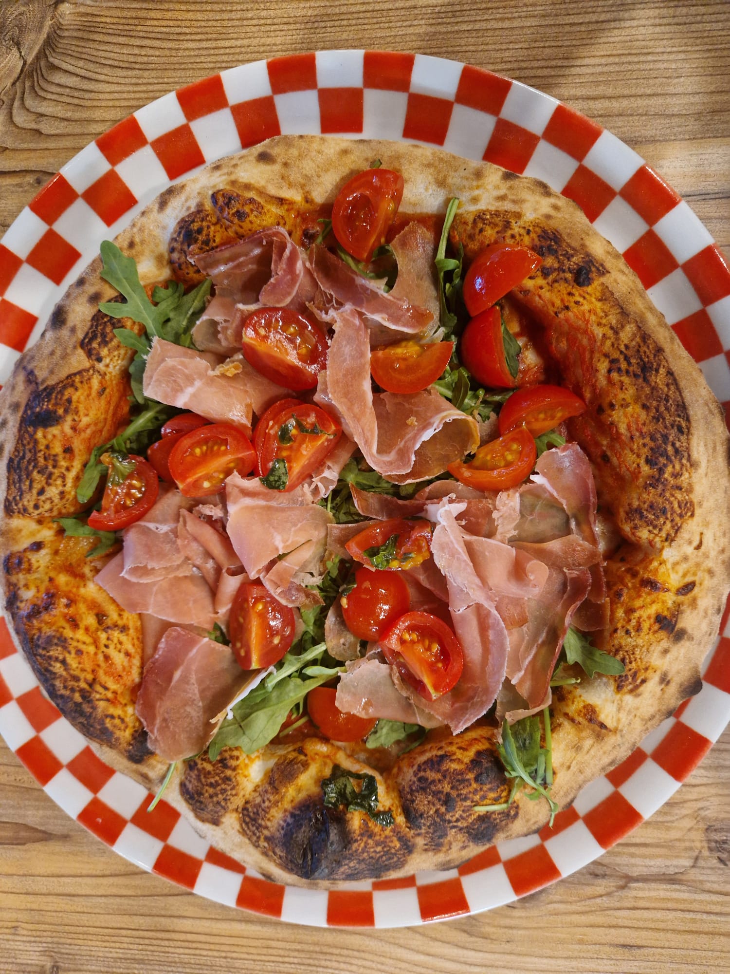 MeucciPomodoro, mozzarella, prosciutto crudo, valeriana, pomodorini saporiti