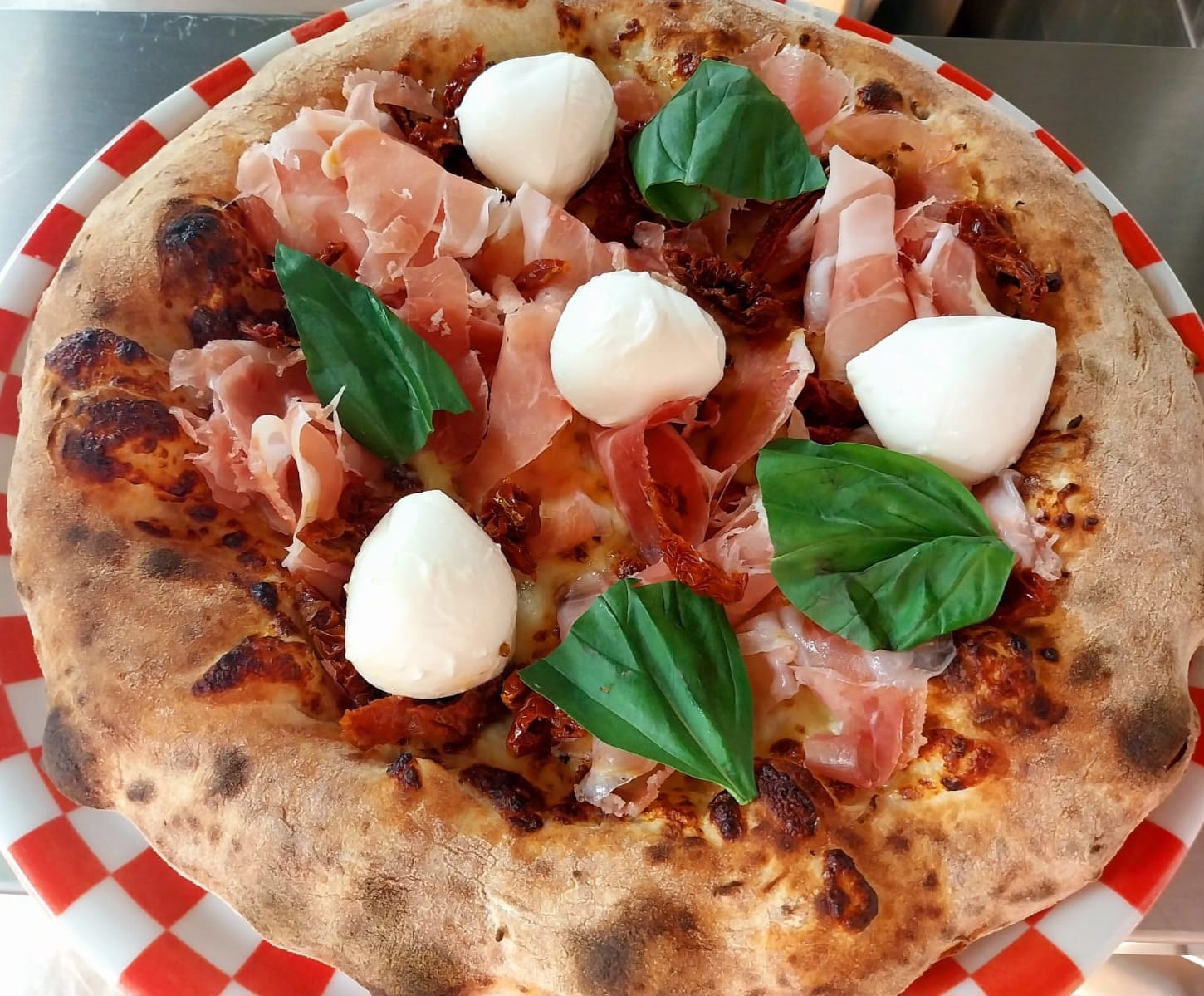 CiceroMozzarella, prosciutto crudo, pomodorini secchi, bufaline, crumble di parmigiano, basilico